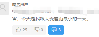 有人调侃今天是和大卖差距最小的一天,引来许多人的点赞。