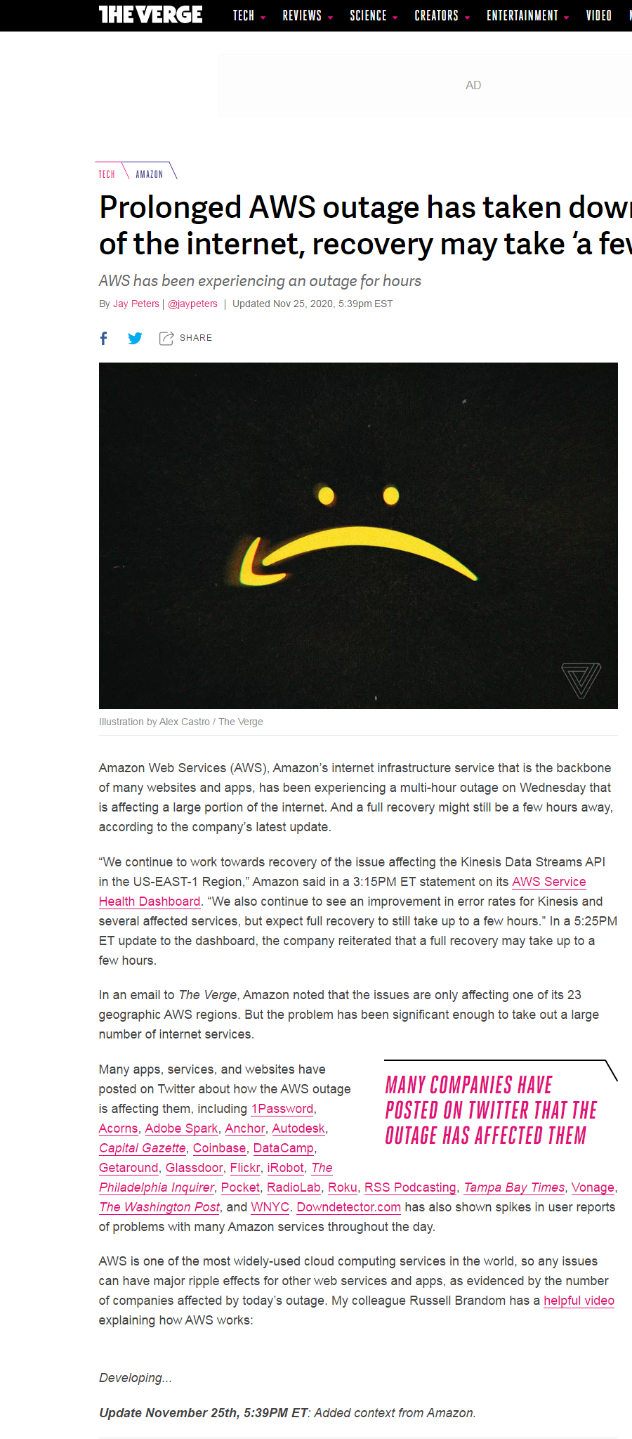 据亚马逊官方发布的通告称,是处理流媒体数据的Kinesis服务出现问题,结果导致许多网站的错误率上升。宕机还影响了它向状态页发布更新的能力。其实这两年来,亚马逊系统故障并不少见,但是发生在大促期间,时间又长,实属急坏了卖家。