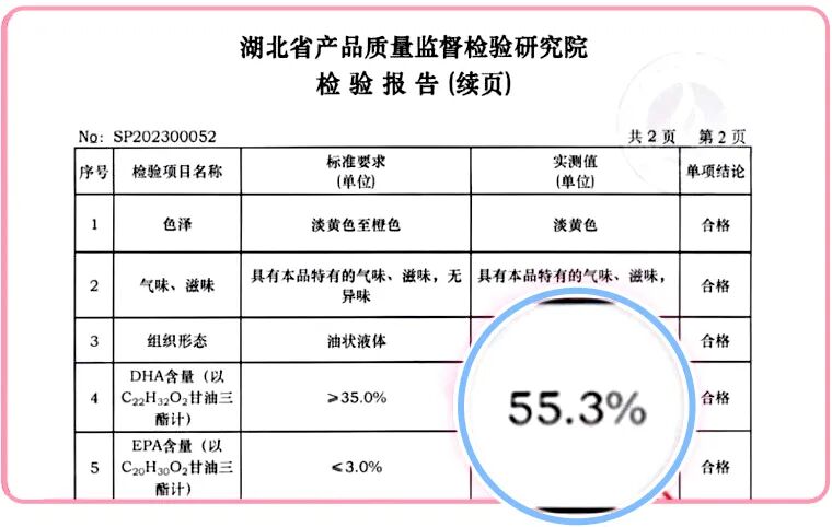 这款 DHA 在严格参照中国营养学会推荐量(100mg DHA/天)的基础上,还考虑到了吸收过程的损耗,额外多给了 10mg,每粒含量 110mg 。