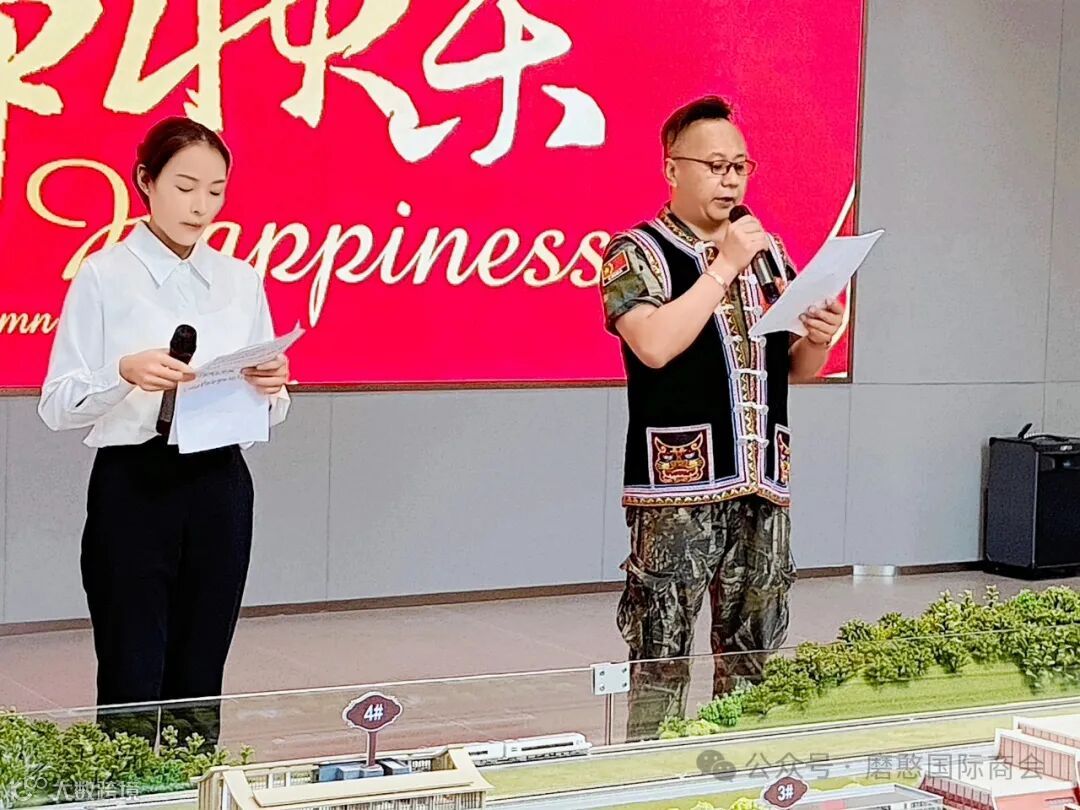 9月13日下午,(昆明)磨憨国际商会和磨憨中铁广场共同举办了一场弘扬传统文化,增强社会凝聚力,促进中老友谊,丰富文化生活,增强民族自豪的迎中秋国际联欢会。活动主持人由商会办公室主任陈彦龙(右)和中铁广场罗远荣(左)两人担任。