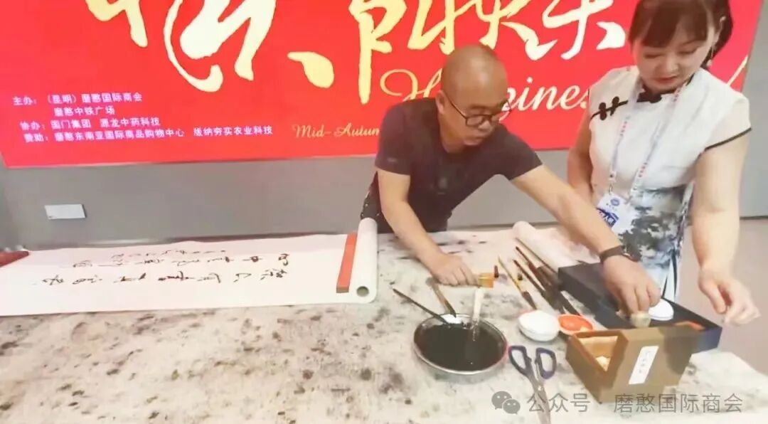 这次联谊会节目丰富多彩,有傣族舞蹈、老挝歌曲、乐器演奏、书法才艺展示、等各种表演形式,还有现场月饼制作、灯笼制作、猜谜语等互动游戏。