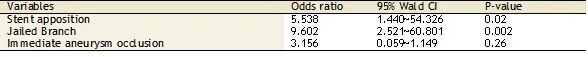 Table 3. Multivariable logistic analysis for distal incomplete aneurysm occlusion with FRED FD