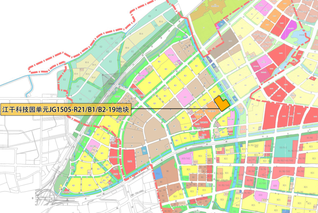 地块位于钱塘智慧城江干科技园单元,东至杭州市江干科技园单元JG1505-45地块支路六公园及地下停车场工程、杭州市江干科技园单元JG1505-44地块绿化工程,南至杭州市江干科技园单元JG1505-44地块绿化工程,西至规划海普路,北至科兴街。地块占地面积47.4亩,容积率2.3,建筑面积约为7.268万平方米,用地性质为商住用地,于2021年年底列入2022年第一批计划集中出让经营性用地计划。
