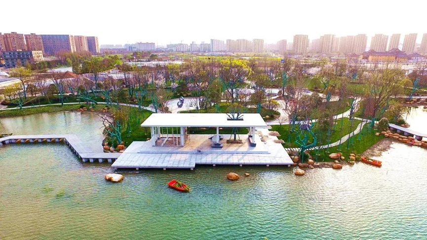 公园占地约205亩,其中中央湖区面积约90亩,绿化面积约85亩,总投资4.5亿元,是一个融合智慧科技、四季追花和海塘遗址为一体的现代风格城市CBD中央湖景公园。