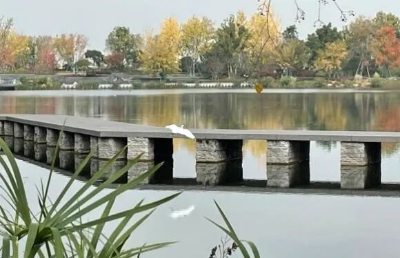 如今的丰收湖公园小气候环境不断优化,还引来了众多鸟类栖息。
