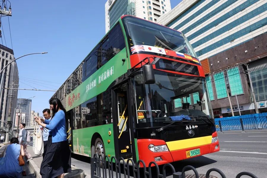 这辆定制的双层巴士,外观上做了精心的电影主题设计,《酱园弄·悬案》宣传海报、电影之城字样格外醒目。坐在舒适的观光巴士里,既能惬意欣赏虹口的城市风光,还能听讲解员讲述上海虹口和影视文化的深厚历史渊源。在巴士内还装置了虹口文化三地以及“上海北外滩、都市新标杆”“文明出行”等宣传标语。