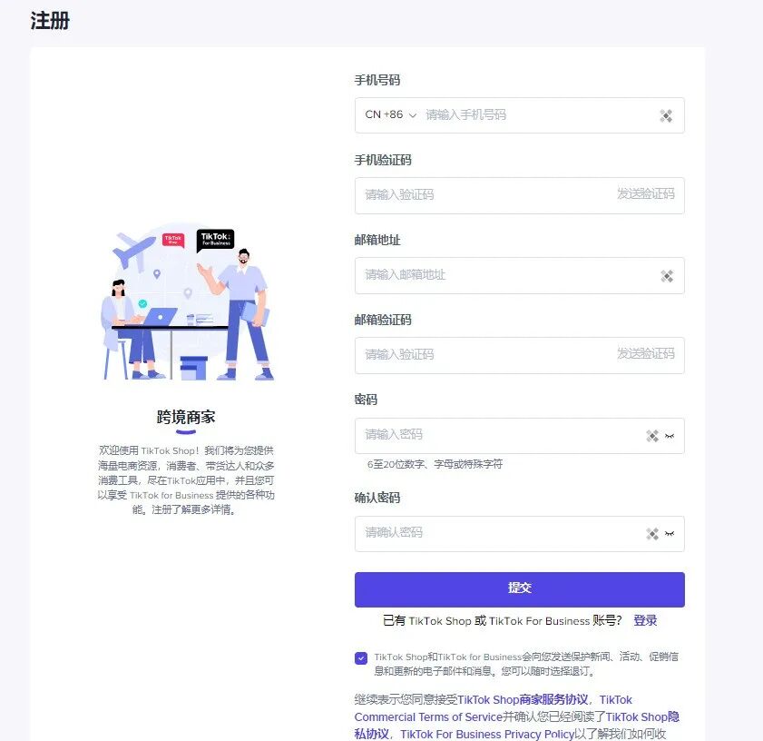 打开网址:https://seller.tiktokglobalshop.com/account/welcome