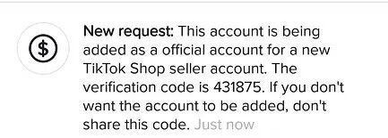 然后需要我们绑定之前注册好的TikTok账号,直接按照引导绑定后,我们的TikTok账号就会收到一个请求绑定的验证码,输入到TikTok小店界面就可以绑定了。