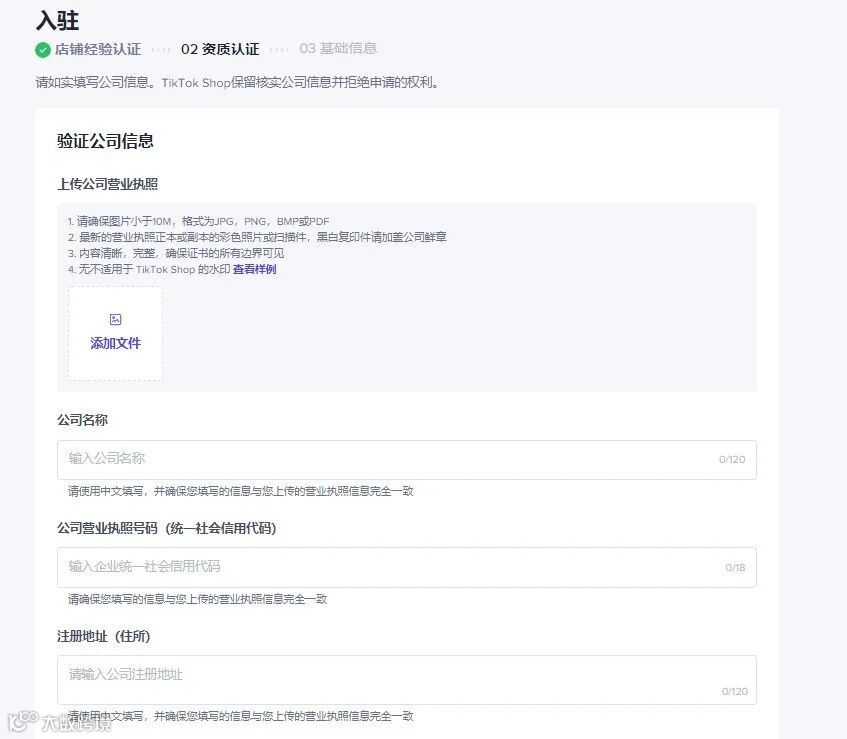 下一步就是上传营业执照的图片,填写公司名字等,核对无误提交后,就等待审核通过的信息发送到注册时填写的邮箱;