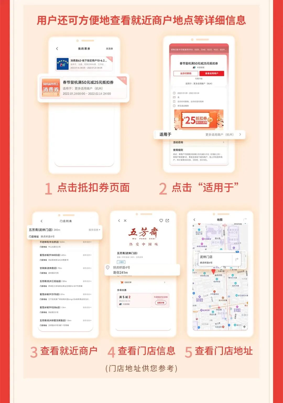 2022年春节期间留杭省外员工电子消费券申报工作已于1月24日21:00结束。申报成功后,如何领取消费券?可以去哪些商户使用?下文为您一一解答。