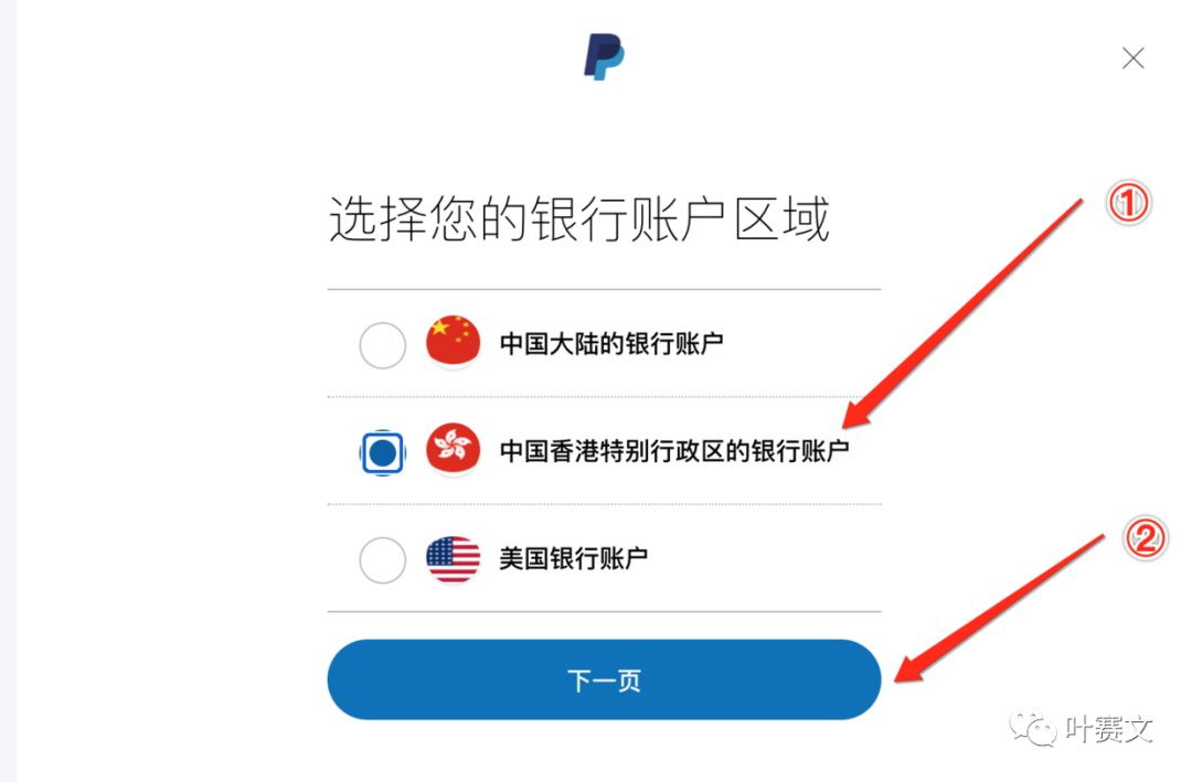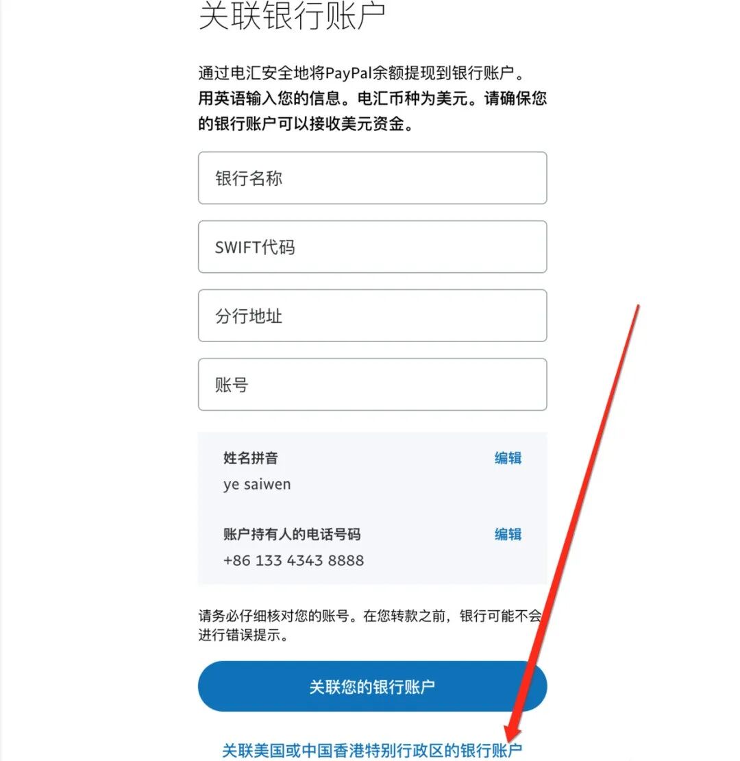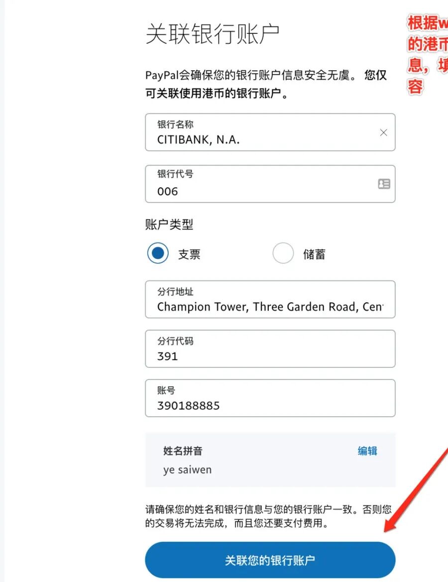 2.2 关联港元账号,单击“关联美国或中国香港特别行政区的银行账户”