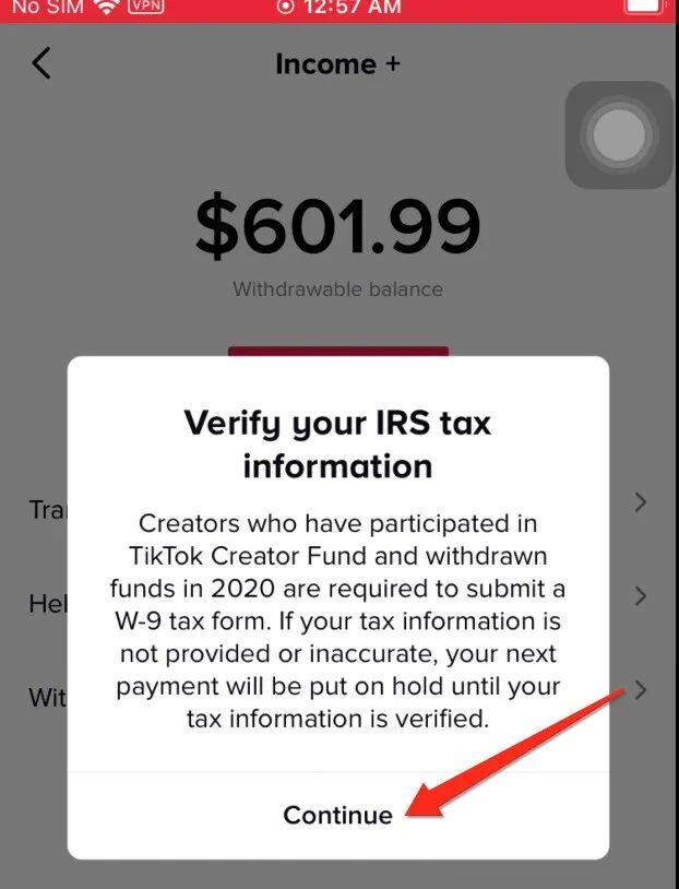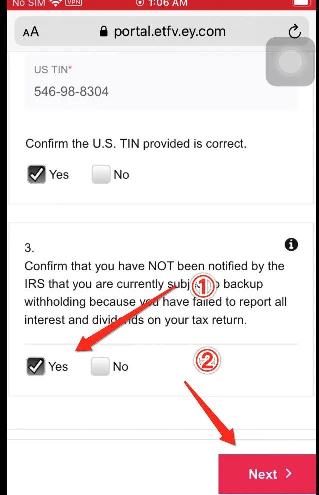 8、验证IRS税务信息,直接点击“Continue(继续)”。