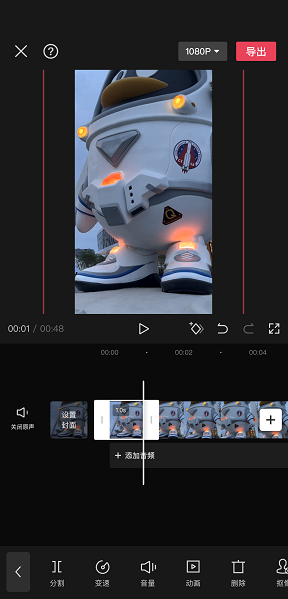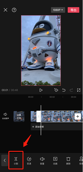 4、抽帧删除:在不影响视频播放逻辑的前提下,可以抽取中间的一些小片段前后点击“分割”进行删除;