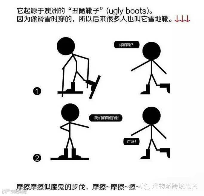 很多人都以为UGG只是美国某品牌,其实不然。UGG其实是澳洲剪羊毛工的发明!他们把羊皮毛往脚上一套,“我去,太舒服了!”于是,UGG开始盛行。澳洲人民爱称为UglyBoots(丑陋靴子。真的是爱称...吗...)或者Ugg Boots,所以,UGG并非特指某个品牌,而是雪地靴的统称。