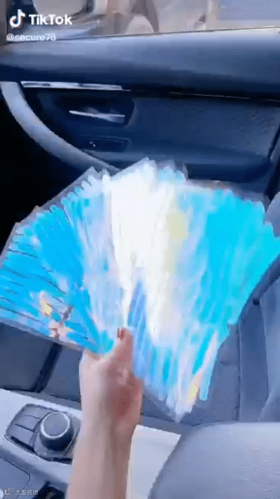 就在上个月底,TikTok美国区名为100(@cornelia533)的账号在上发布了一个视频,视频中展示了一款汽车贴纸的使用过程。视频中,使用者仅需将贴纸贴到汽车玻璃上,然后压实并撕去覆盖膜即可,这之后便拥有了极具创意的、具有反光功能的汽车装饰。