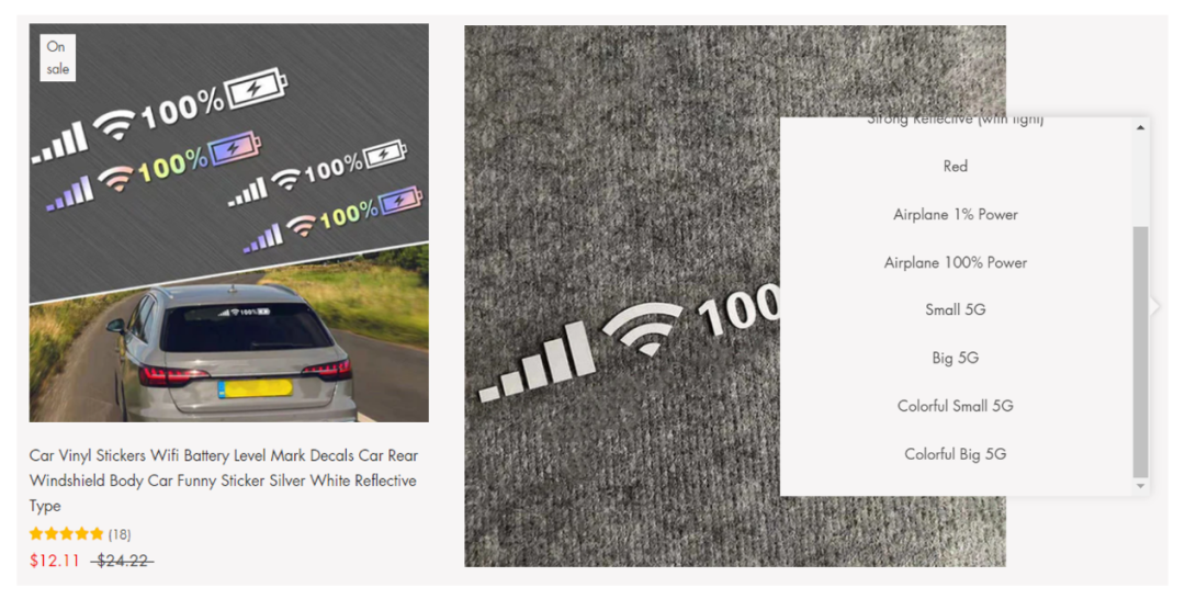 评论区除了“我喜欢这个贴纸”、“我需要这款贴纸”的评论外,还有不少网友发表着自己的意见,比如该网友就表示了不喜欢贴纸中WIFI的图标,希望可以有5G的图标。商家账号针对网友意见改进了贴纸,并在几日后就发布了印有5G图标的汽车贴纸。