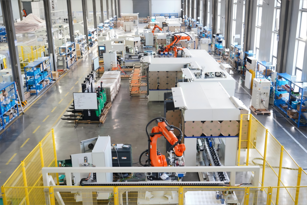 该产线可兼容50-314Ah容量方形电池系统的组装,年产能达5GWh以上,覆盖从电芯处理、到PACK装配、再到集装箱装配和检测等全流程工段。