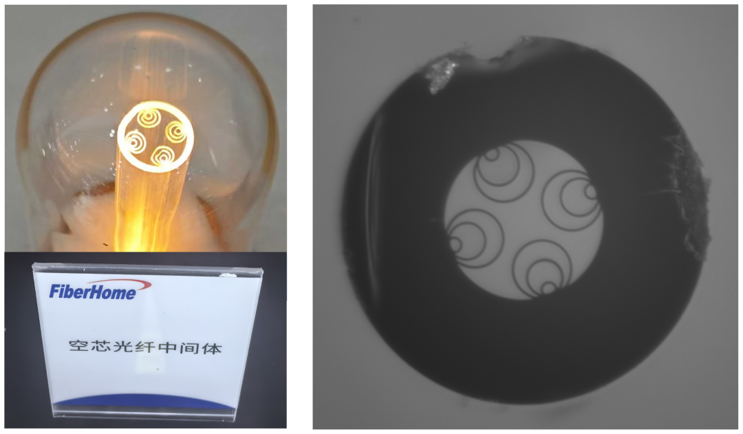 烽火通信研制的空芯光纤中间体和光纤端面结构示意图