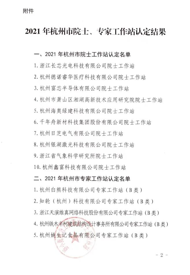 2021年杭州市院士、专家工作站认定名单出炉,在专家工作站部分,上城区2家单位榜上有名,分别是杭州白熊科技有限公司与知轮(杭州)科技有限公司,均为钱塘智慧城科技企业。