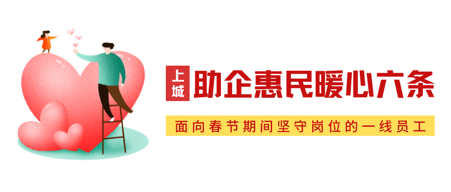为统筹做好疫情防控和经济发展,鼓励企业员工留杭过春节,体现上城温暖和城市关爱,上城面向春节期间坚守岗位的一线员工,率先推出诚意满满的“助企惠民暖心六条”政策: