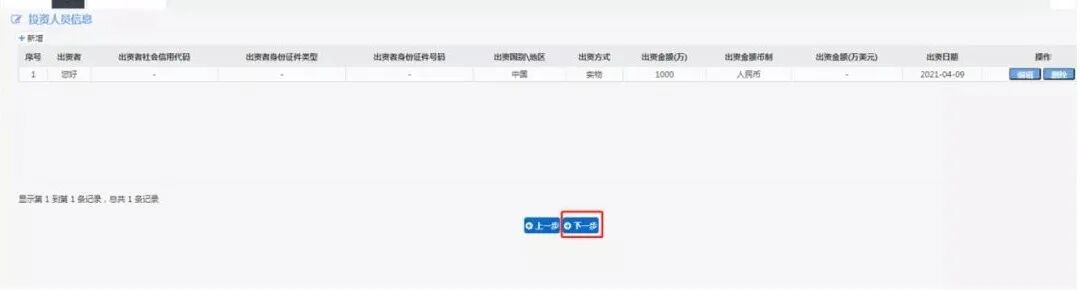 5.在投资人员信息页面,点击左侧“新增”按钮。