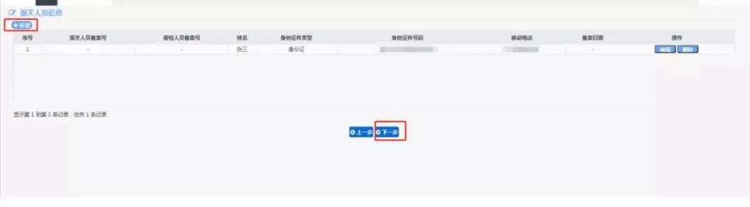 8.在“报关人员信息”页面,点击左侧的“新增”按钮,按同样的方法填写报关人员信息。报关人员本次可以不填,以后通过信息变更的方式填写。