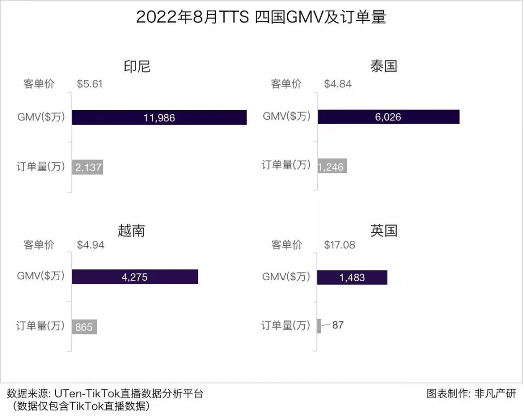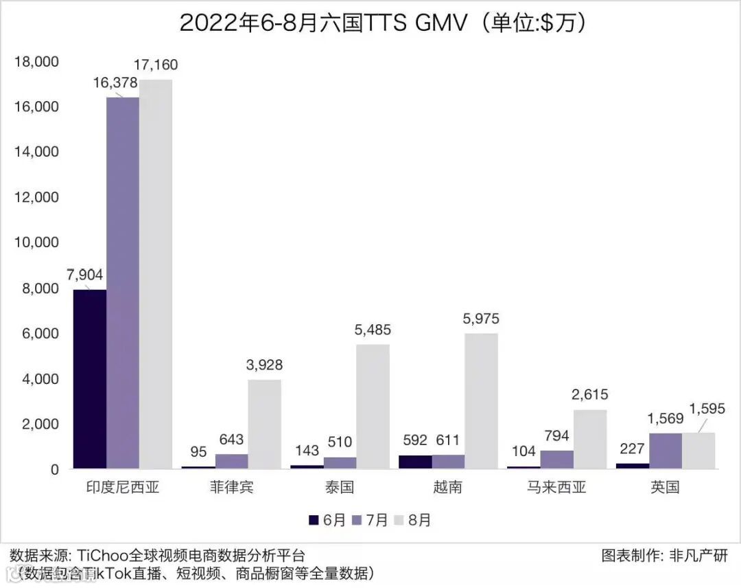 8月份,印尼、菲律宾、泰国、越南、马来西亚、英国的GMV总量都有翻倍的提升,从百万级跨入千万级。