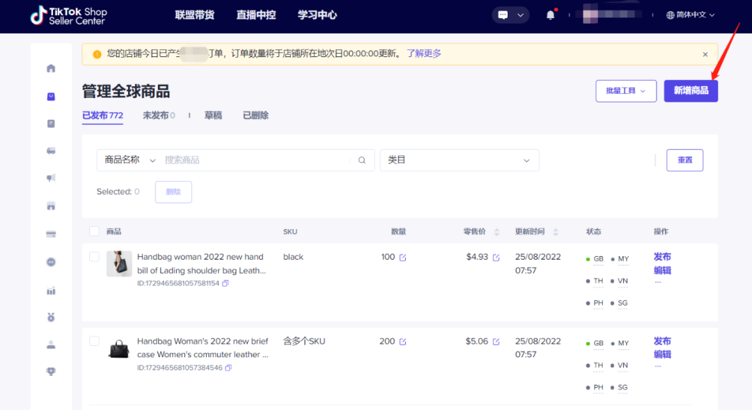 这里特别敲黑板提醒下新学员,TikTok小店如果下店后没有上传产品,有被封店的风险。