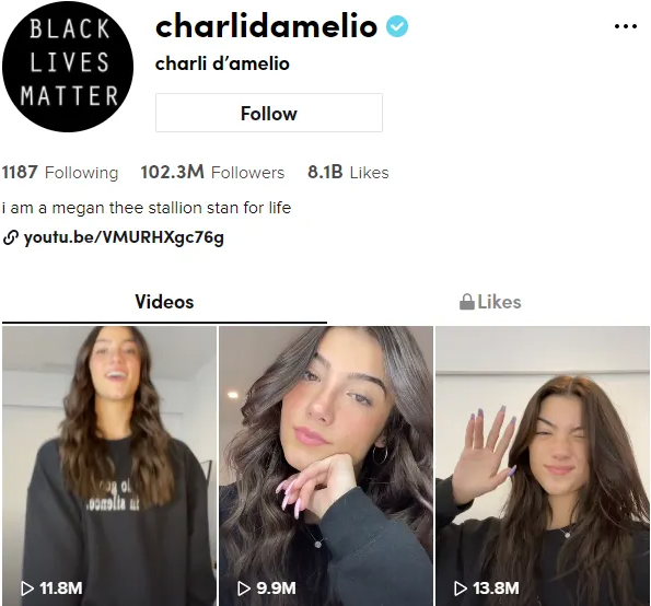 作为 TikTok 上最大的创作者,Charli D’Amelio 每个视频的平均观看次数为 2700 万次,