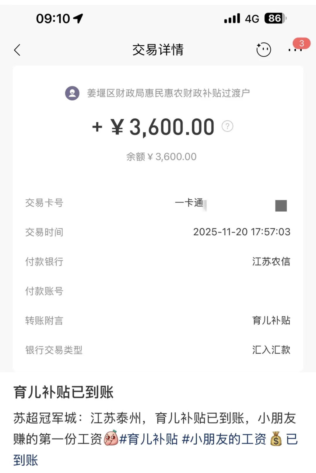 (3)育儿补贴发放渠道为申领人或婴幼儿的银行卡或其他金融账户。