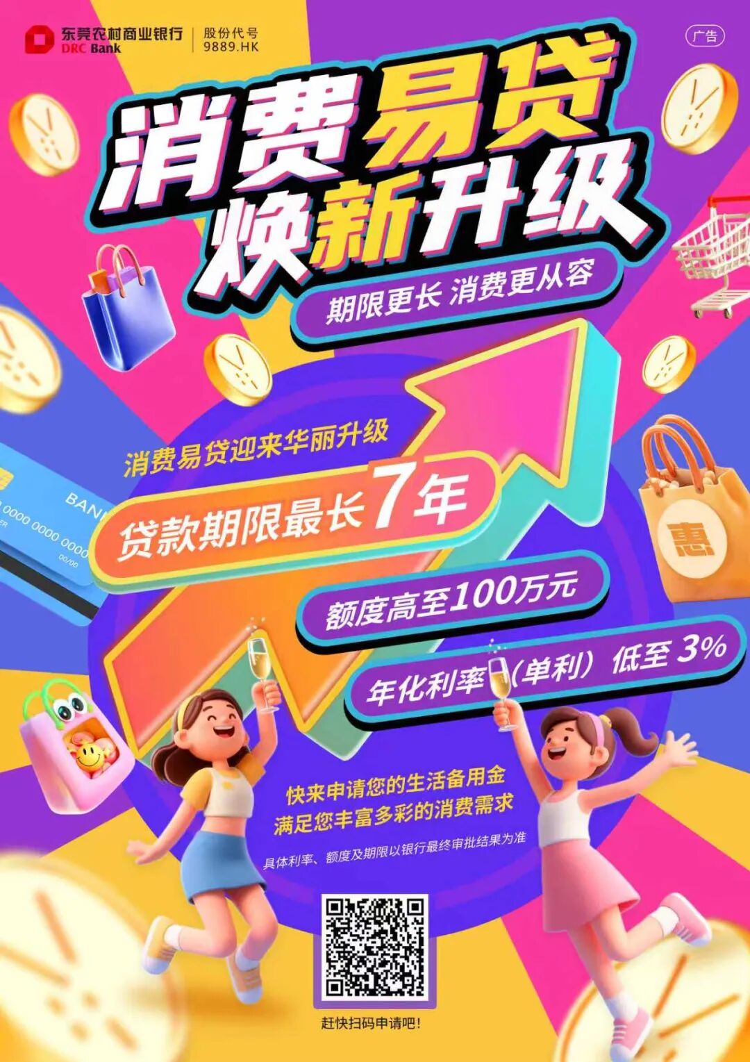 ◎准入条件:具年龄在25周岁到55周岁(含)、工作关系及常住地在东莞,具有稳定收入且信用记录良好、工作及收入稳定的客户