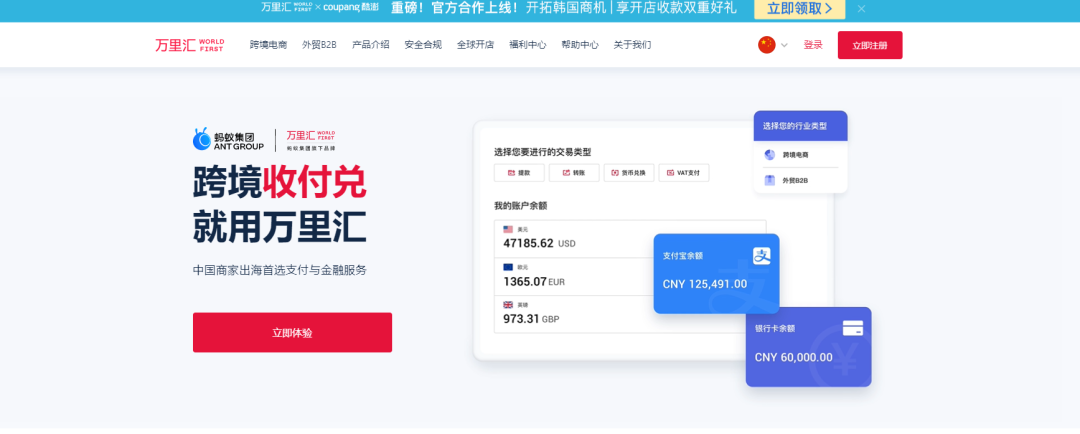 万里汇(WorldFirst)属于蚂蚁集团旗下品牌,2004年成立于英国伦敦,主营业务是跨境收付款服务。