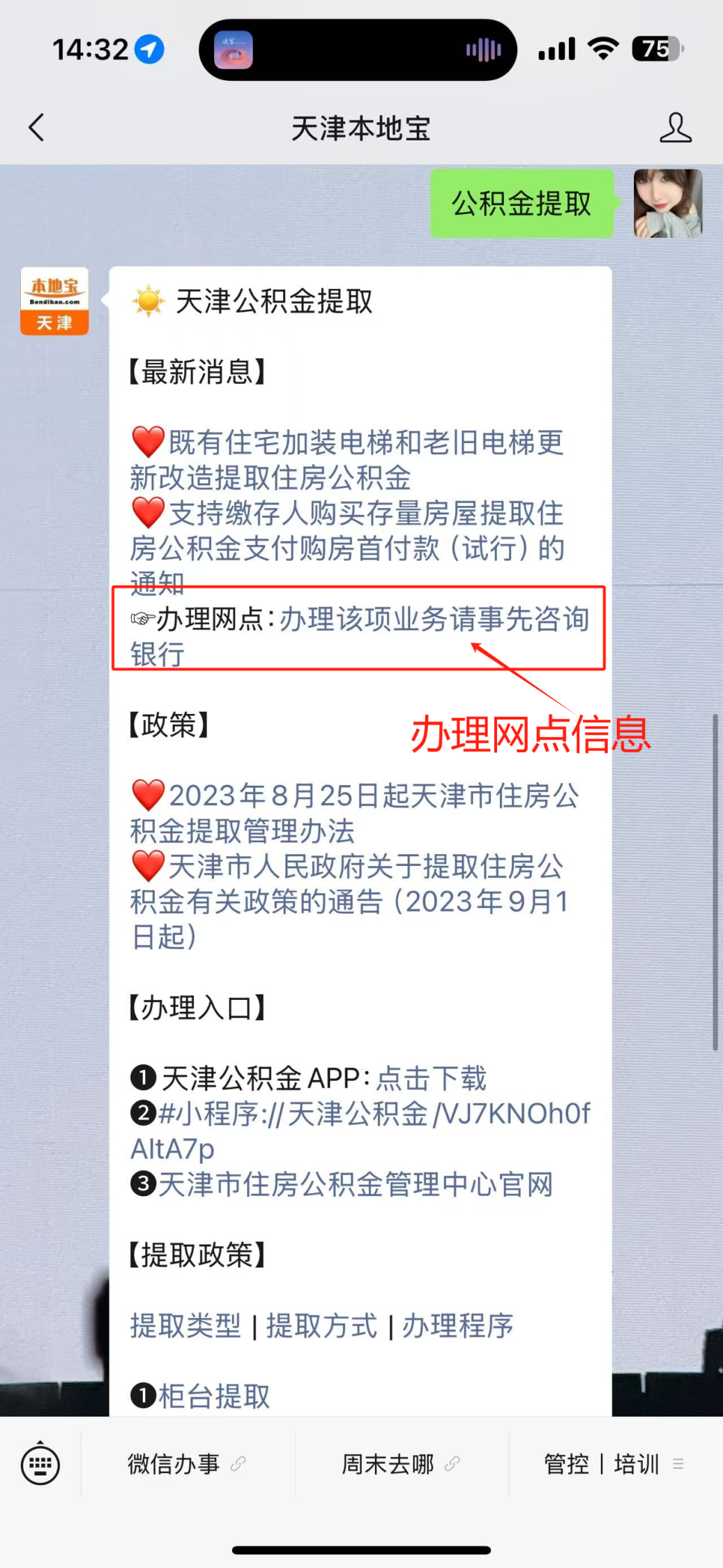 办理网点信息查询:长按下方二维码,关注【天津本地宝】微信公众号,微信对话框回复【公积金提取】,即可获取网点的地址和电话。