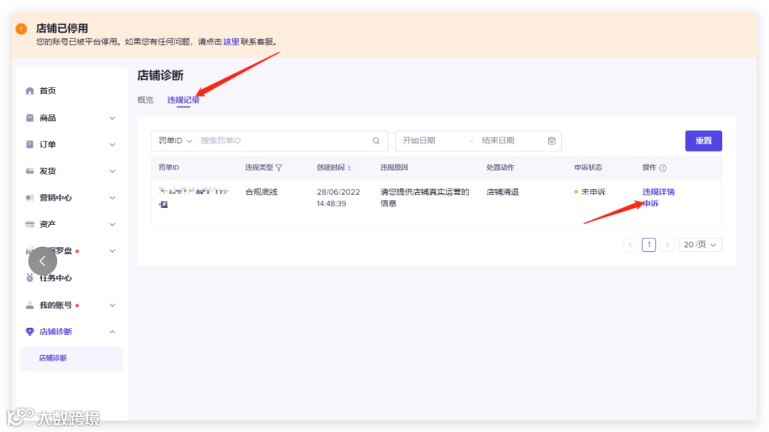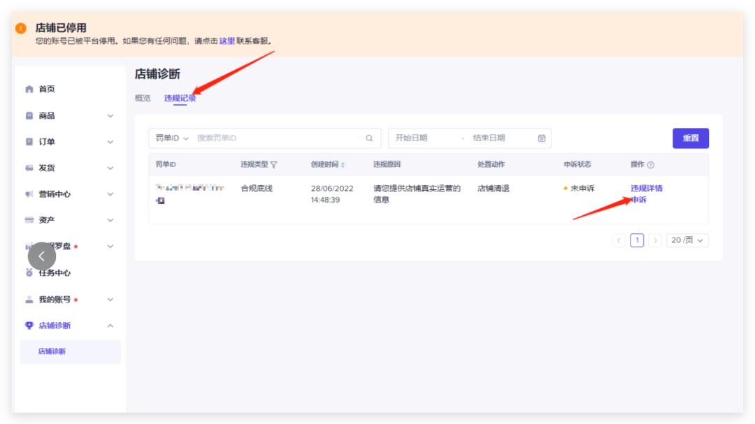 我发现有不少人申述选错了入口,不是在帮助中心创建工单,而是在“店铺诊断”入口提交!