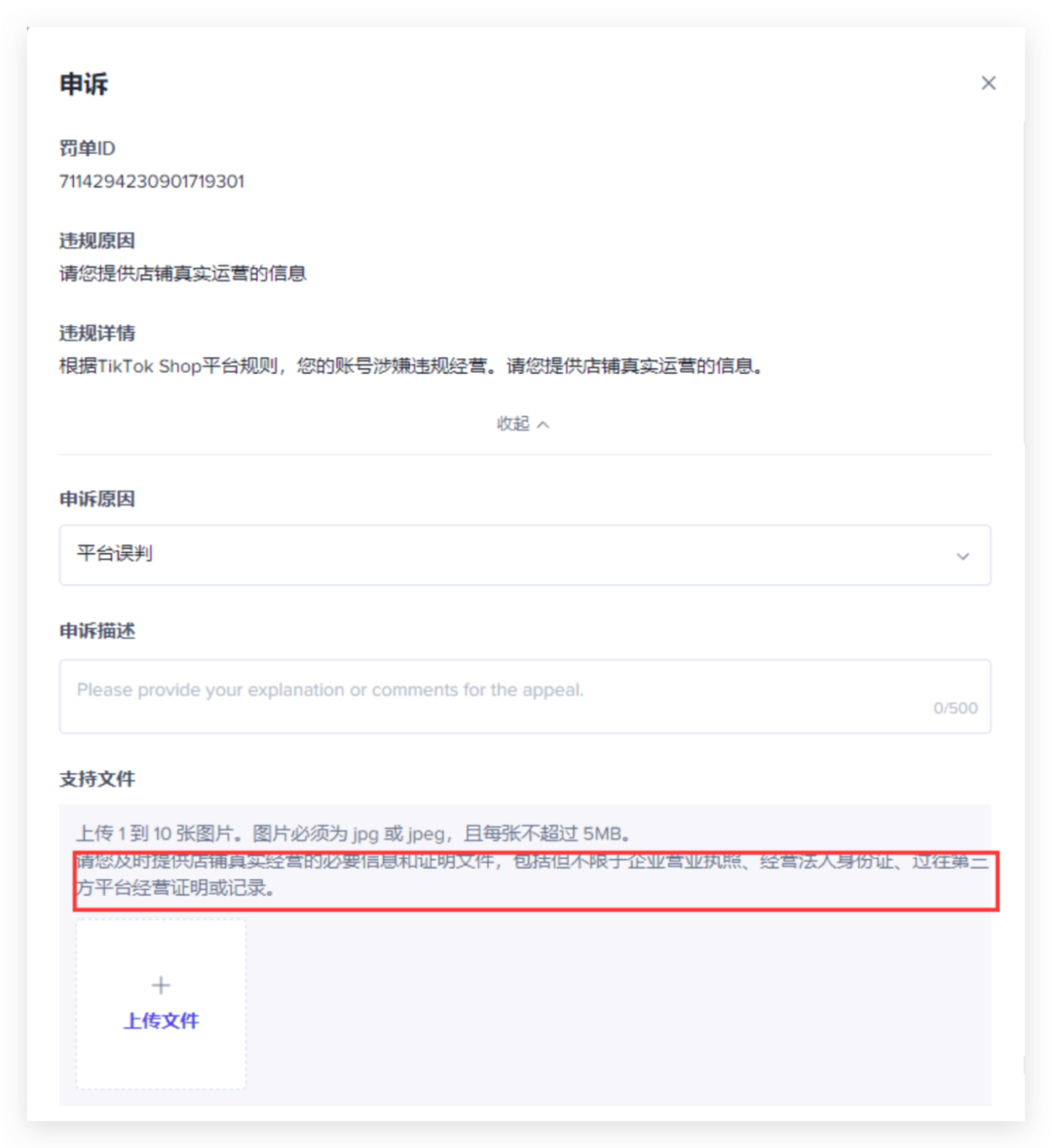 注意:一定要上传当时注册店铺的营业执照和身份证,确保高清!