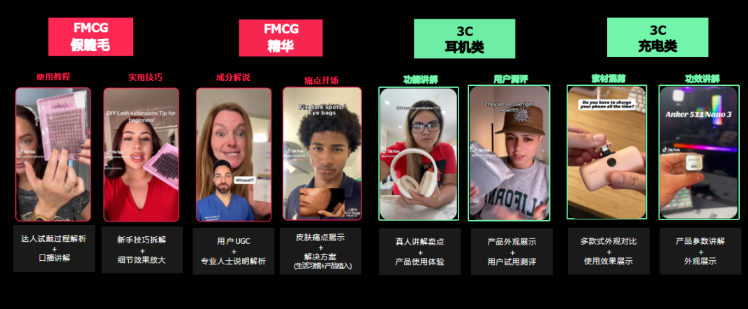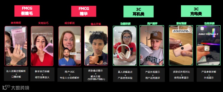 目前,可以看到爆款素材的脚本结构主要有开箱+产品介绍+多场景试用,创意片头+产品展示+CTA,痛点展示+效果对比+优惠信息,优惠信息+产品展示+功效介绍+CTA,效果展示+卖点讲解+使用步骤+CTA。