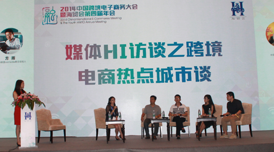 海贸会年会媒体Hi访谈,右一为张俊杰记者