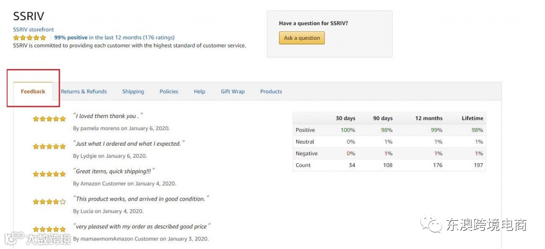 好评:4-5星 (可以增强店铺或listing的竞争力)