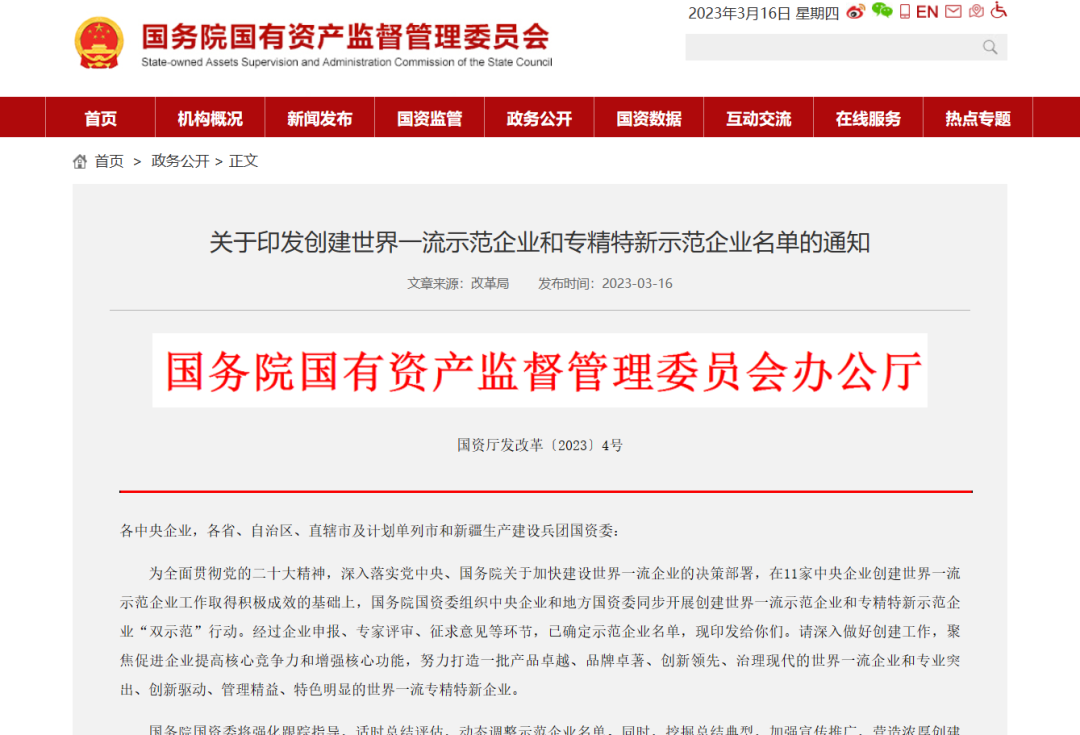 来源:国务院国有资产监督管理委员会办公厅