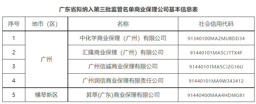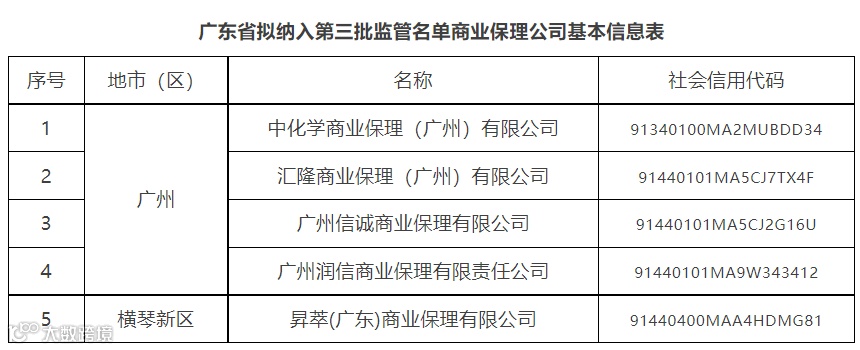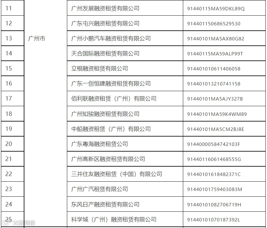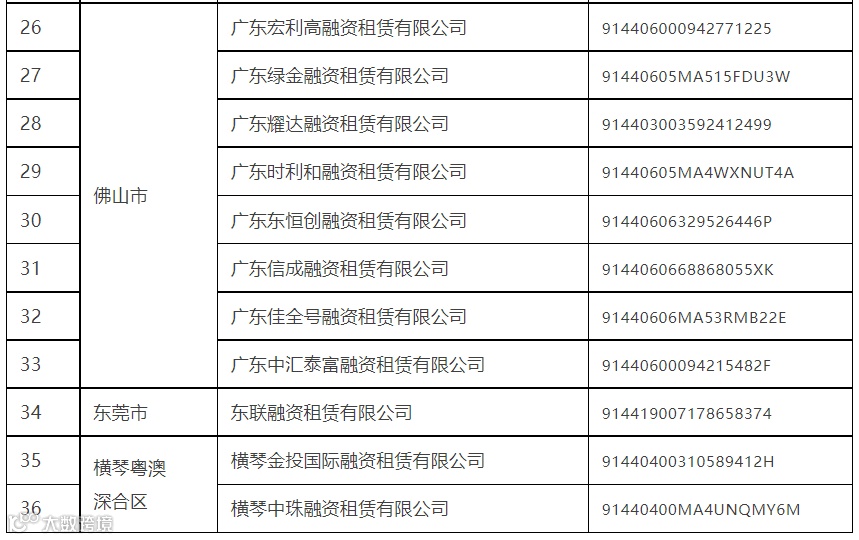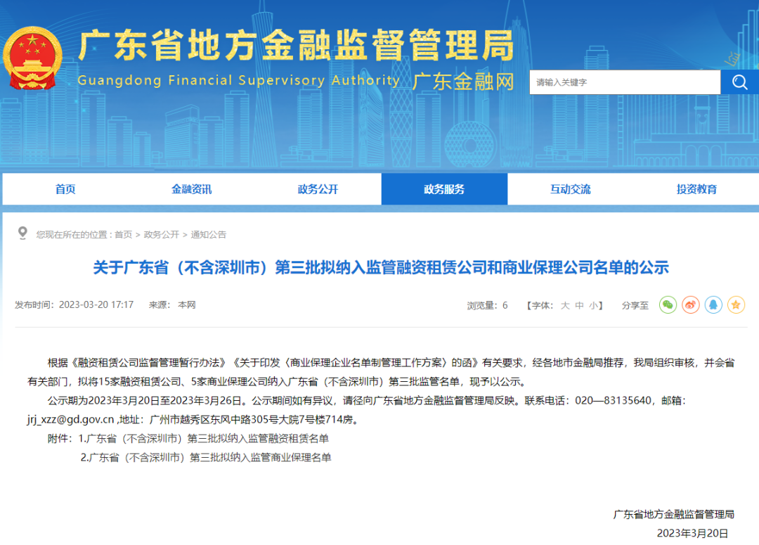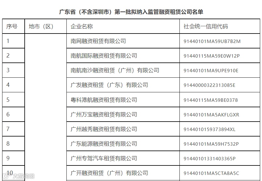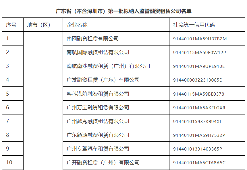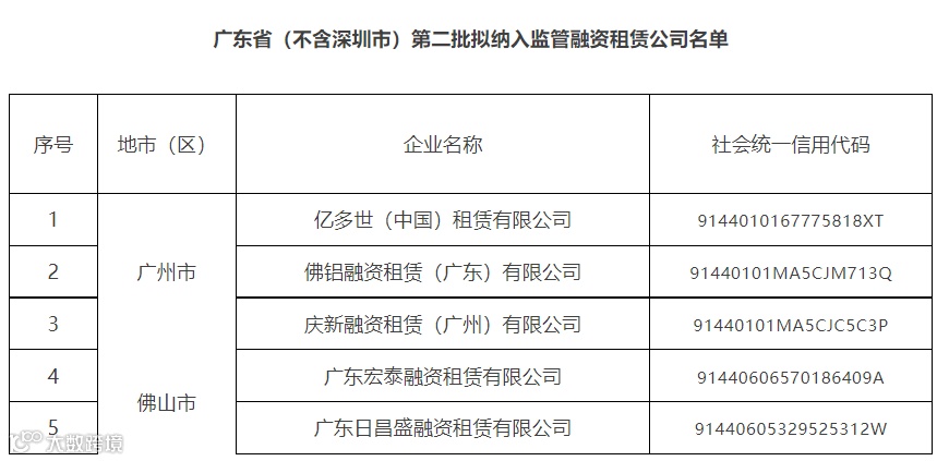 关于广东省(不含深圳市)第三批拟纳入监管融资租赁公司和商业保理公司名单的公示