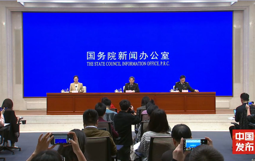 4月12日,国务院新闻办新闻发布会进行一季度经济数据例行发布,海关总署副署长王令浚。海关总署新闻发言人、统计分析司司长吕大良出席并答记者问。