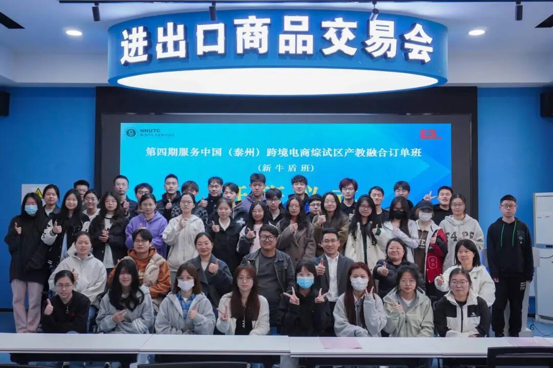 据了解,第四期“订单班”的培养计划是由新牛盾向泰跨联提出人才需求后,由泰跨联负责与高校沟通对接,并在泰兴市商务局和泰州市商务局的政策支持和业务指导下,顺利完成了人才培养项目的备案流程。于4月8日在南京师范大学泰州学院国际贸易实训室隆重开班。