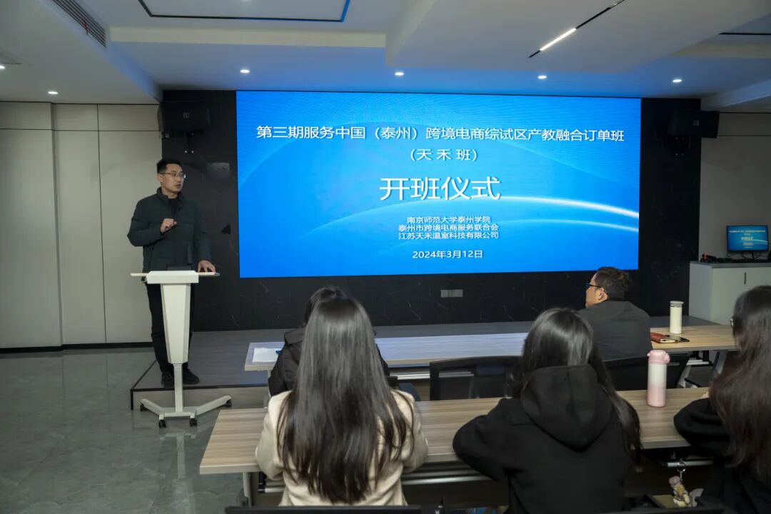 在泰州市商务局和兴化市商务局的指导和支持下,泰州市跨境电商服务联合会积极响应《江苏省推进跨境电商高质量发展行动计划》,与南京师范大学泰州学院商学院和江苏天禾温室科技有限公司携手,于3月12日成功举办了第三期跨境电商产教融合订单班开班仪式。通过整合政府、高校、企业以及协会四方资源,打造一个高效、实用的人才培训体系,深化产教融合,推动校企合作,为跨境电商行业输送更多高素质专业人才。四方将携手共创跨境电商教育新模式,打造一条集产业发展需求与教育教学于一体的人才培养快车道。