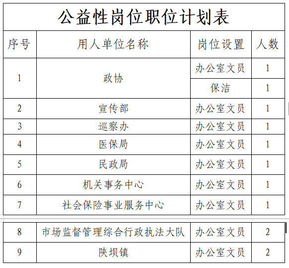 详见附表《公益性岗位职位计划表》