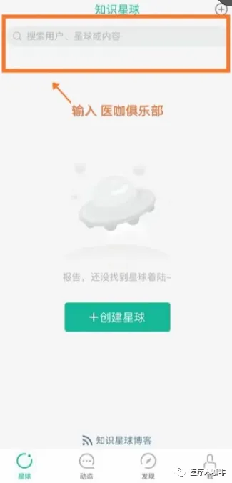 1.1 打开APP看到如下界面,在搜索栏里输入“医咖俱乐部”。