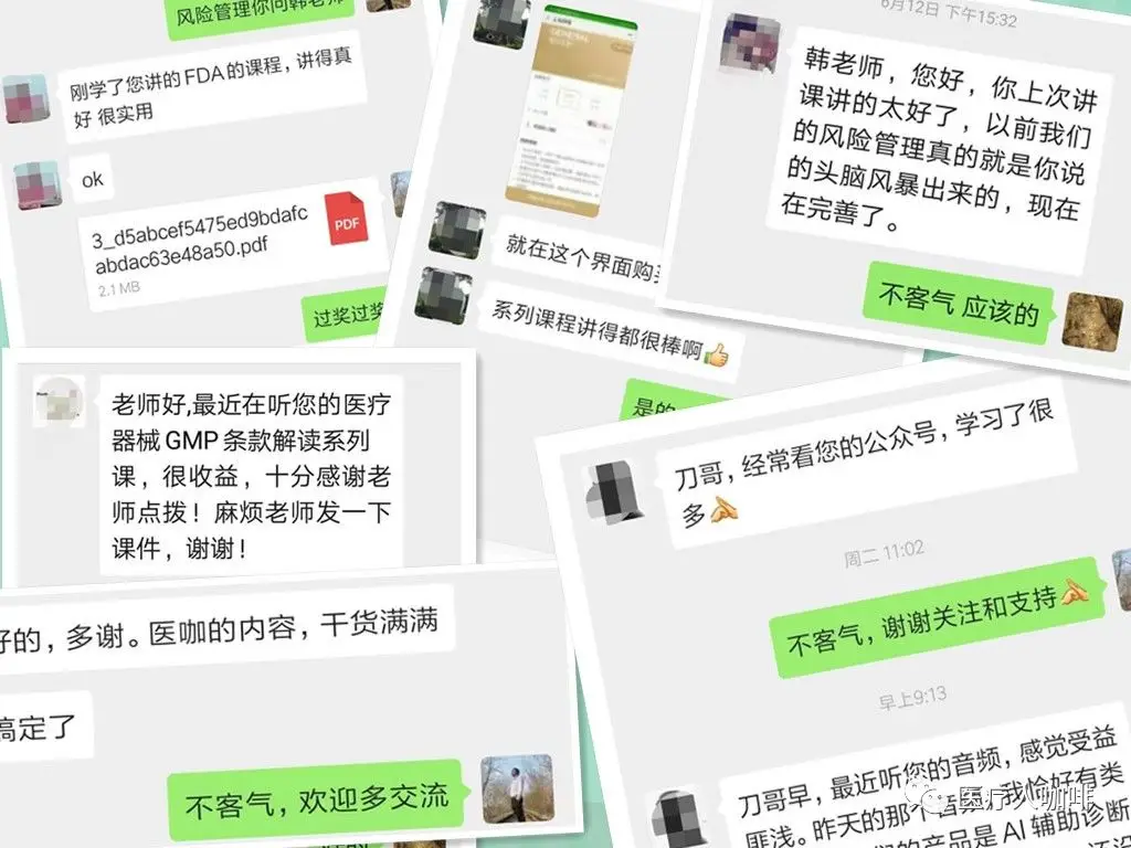 医咖网上课堂由九位医疗器械资深专家发起。旨在打造一个高效便捷、快速学习、良性互动的平台,让朋友们在此学习专业知识、结识良师益友。医咖网上课堂开设医疗器械质量法规及职业发展课程800多节,内容丰富、深入浅出,上线以来得到了朋友们的热烈欢迎。关注人数超过12000人,学习人次超三十万次,已成为国内在线学习医疗器械知识的标杆平台!欢迎添加韩老师微信(可获取200元抵扣券)成为网上课堂会员,本月底前所有课程畅听一年仅需399元!