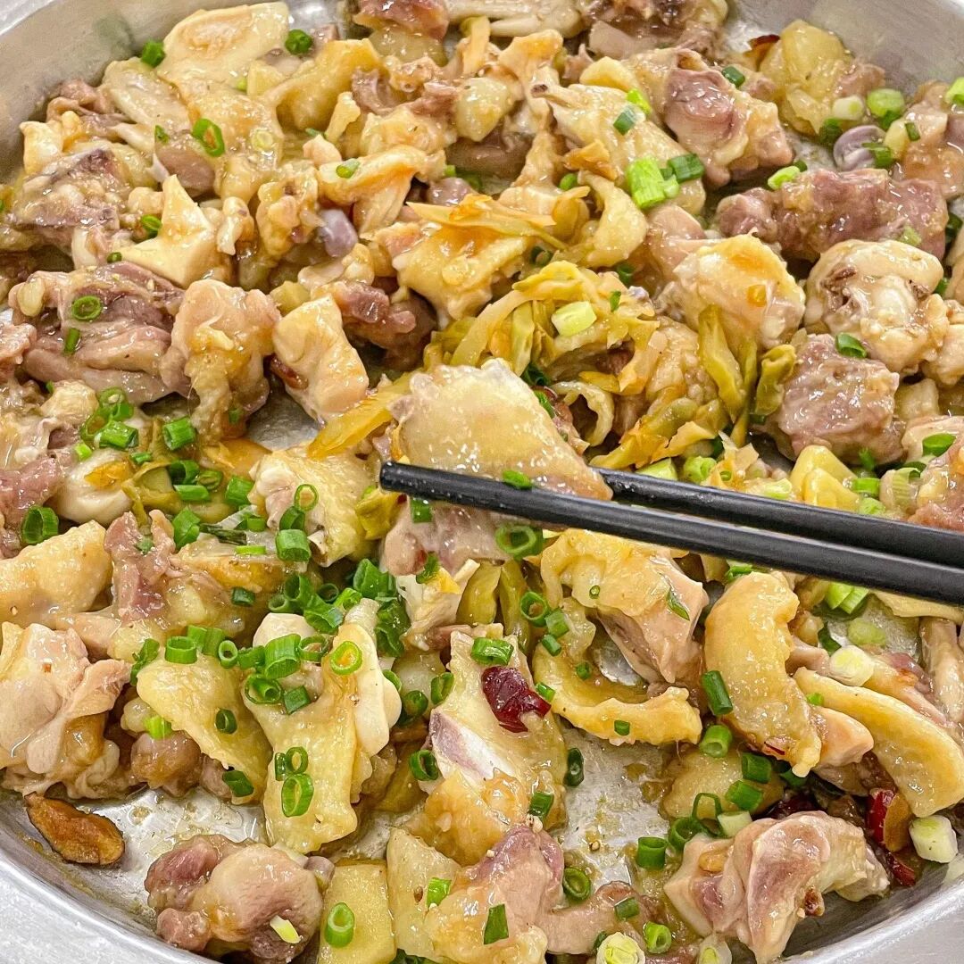 碟头饭套餐:优质晚造米饭、板栗鸡、炒三丁、娃娃菜、菜干红萝卜骨头汤。