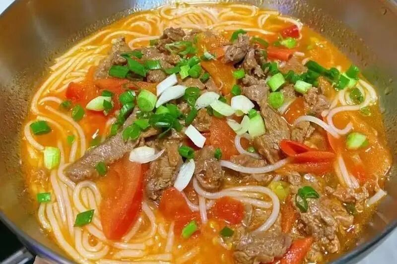 汤粉面套餐:龙骨高钙汤、番茄牛肉米粉、香香扒、娃娃菜、菜干红萝卜骨头汤。