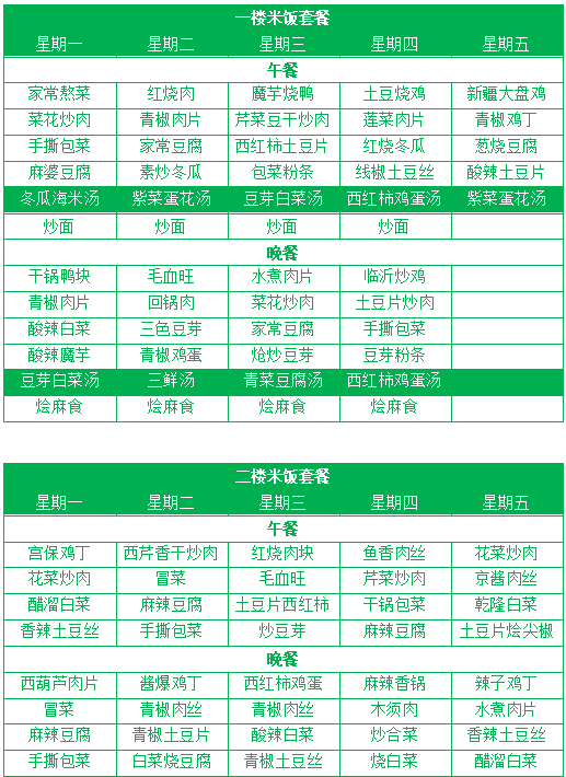 每周食谱