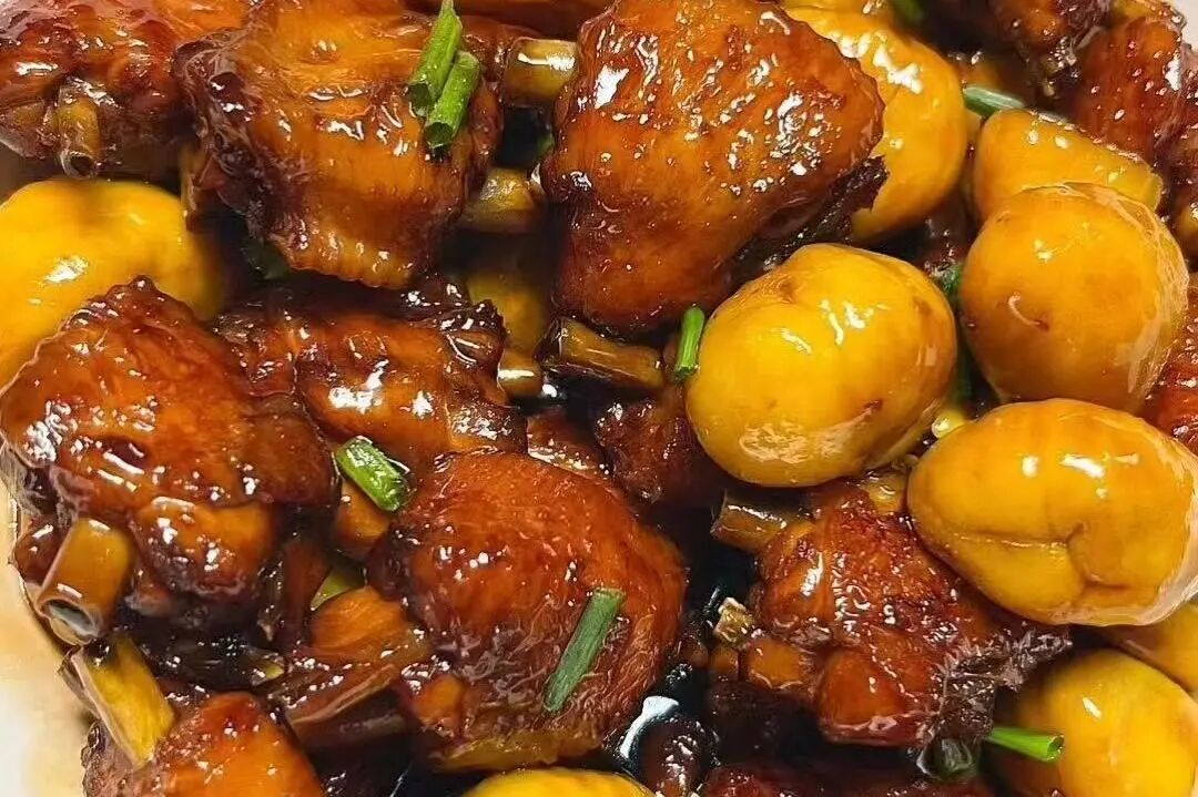 广式营养套餐:板栗蒸鸡、红烧茄子、白萝卜焖鱼松、炒椰菜、淮山玉米肉碎汤。
